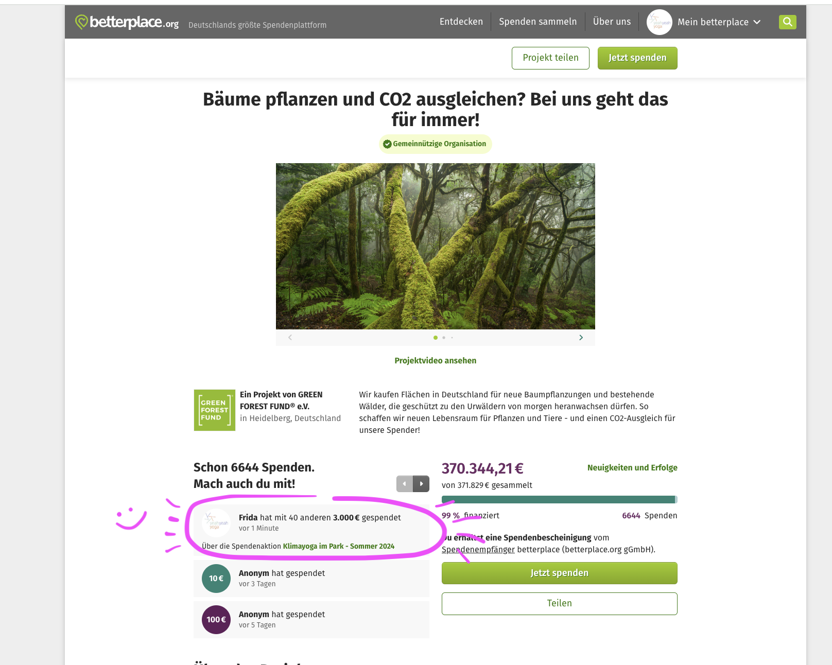 Auch wenn's schon ein paar Monate her ist, bin ich noch immer völlig platt, was für eine immense Summe wir gemeinsam zusammenbekommen haben und an den Green Forest Fund e.V. weiterleiten konnten. Damit konnten 100 Bäume auf insgesamt 500 qm Fläche gepflanzt werden – für den Urwald von morgen.