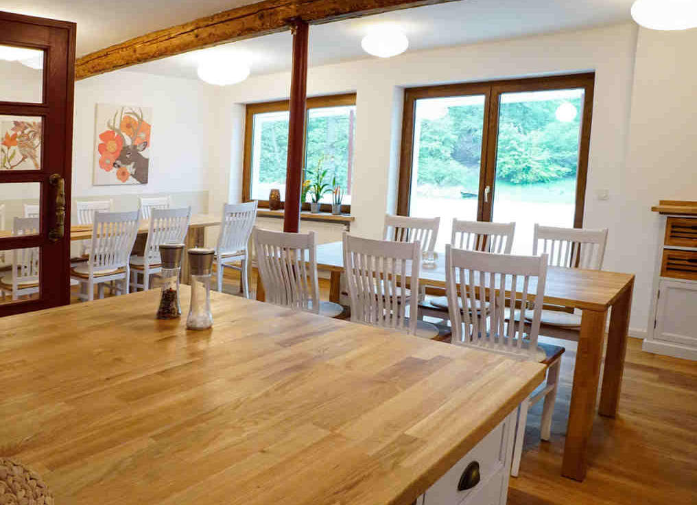 11:00 Uhr: gemeinsamer Brunch, anschließend Zeit für dich, zum Beispiel auf der tollen Terrasse, am oder im Naturteich, im Wald ...