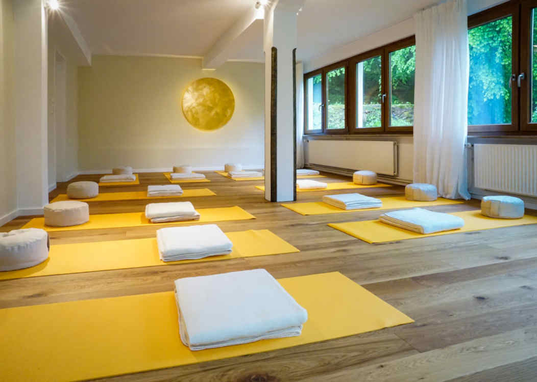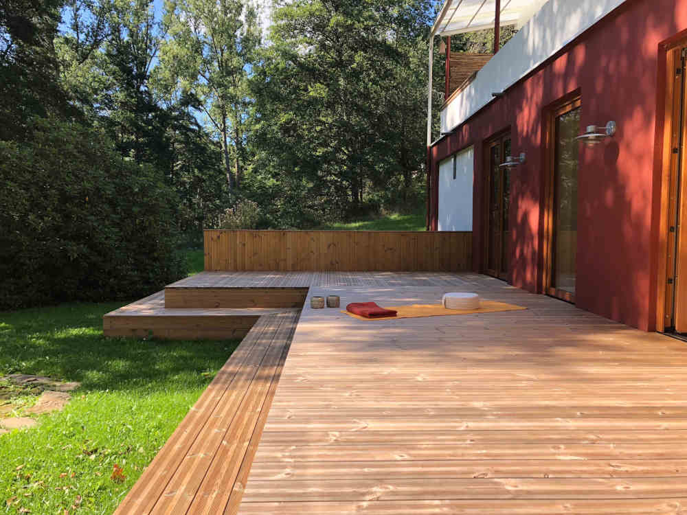 Komm mit auf ein Wochenende Yoga im Grünen – in Alleinlage, idyllisch gelegen, umgeben von ursprünglichen Wäldern und Wiesen. Bei schönem Wetter finden die Yogaeinheiten auf der Terrasse statt.